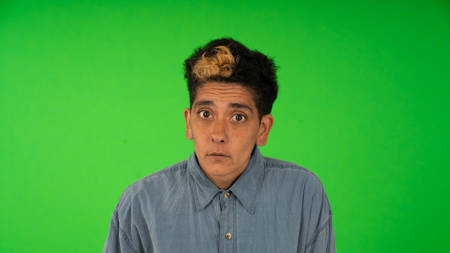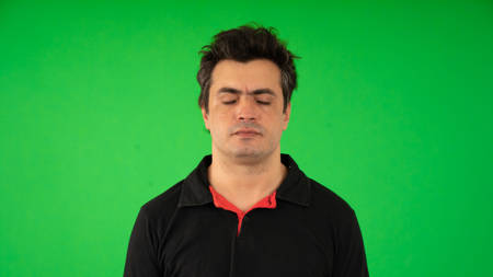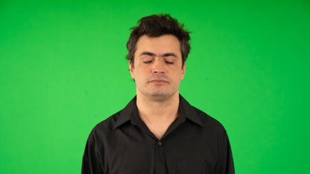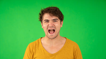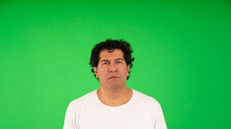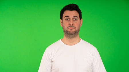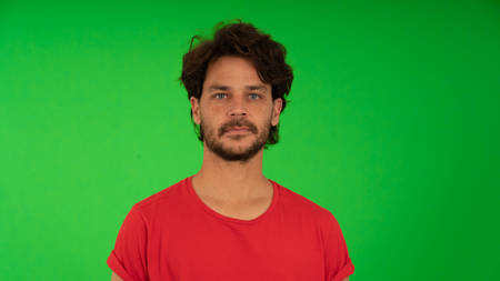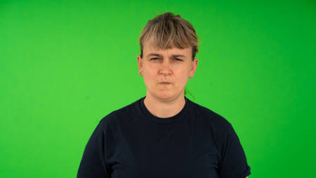 Human faces, front shots of adults only, original camera output on green screen.